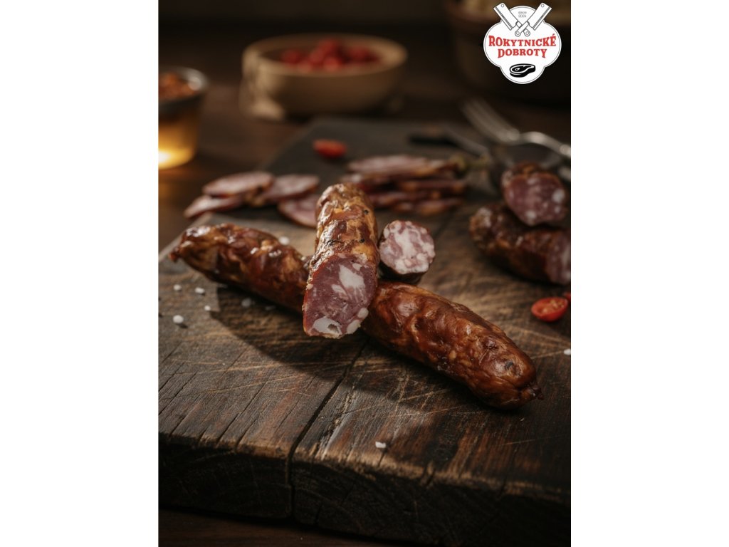 Složení: Vepřové a hovězí maso, směs koření, konzervant E250