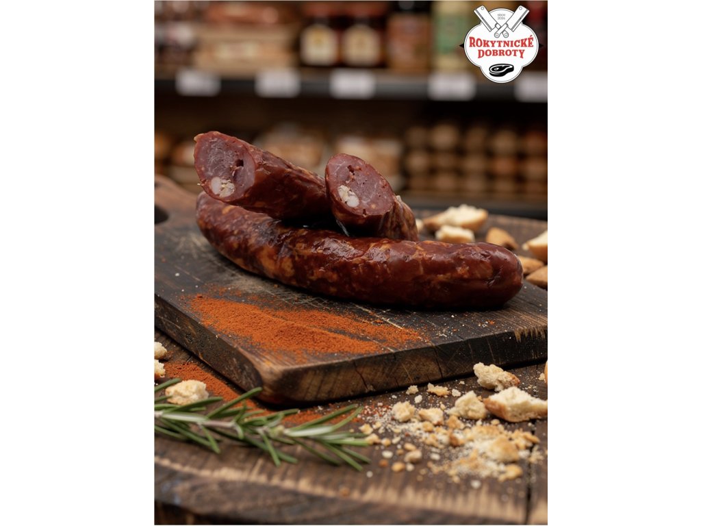 Složení: Vepřové a hovězí maso, směs koření, konzervant E250