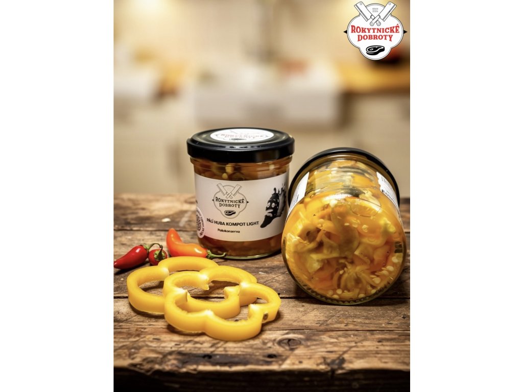 Pálí huba kompot light – jemnější bratříček našich ostrých kompotů. Chuťově pořád pěkně odvážný, ale nepálí jako závodník v chilli soutěži. Ovocná dobrota s lehkým „zakousnutím“, které potěší ty, co chtějí pikantní zážitek bez ohnivé pohotovosti.