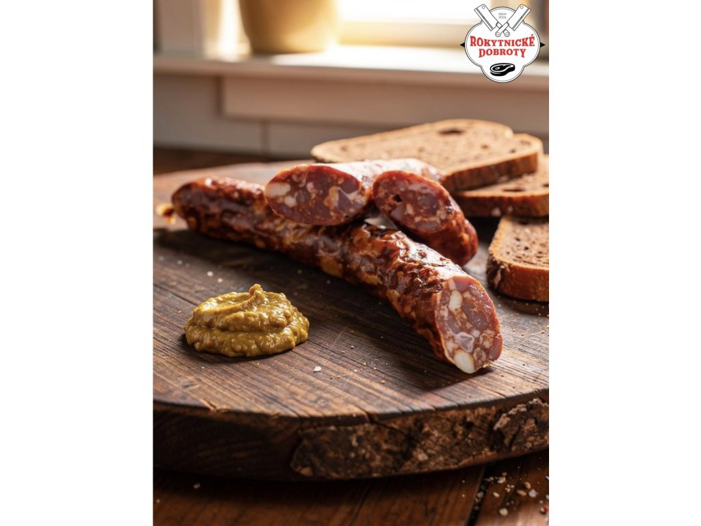 Složení: Vepřové a hovězí maso, směs koření, konzervant E250