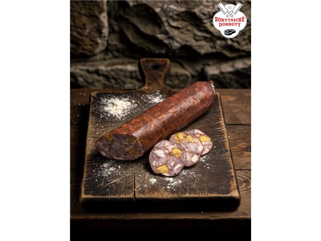Vyzkoušejte jedinečnou kombinaci chutí s naším salámem s chedarem a papričkami jalapeño. Lahodný sýr chedar se zde snoubí s pikantním nádechem jalapeños, což vytváří dokonalý mix pro všechny, kteří mají rádi originální a výrazné chutě.