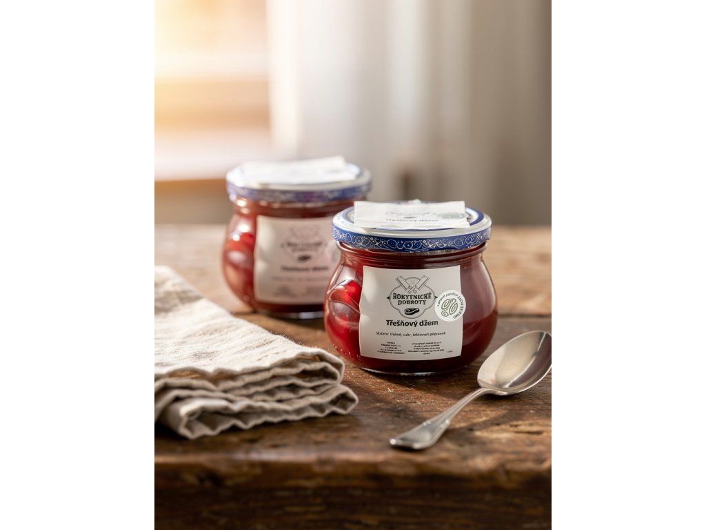 Třešňový džem, který je tak slaďoučký, že by se do něj zamiloval i kompot. Plné kousky třešní, jemná šťavnatost a chuť, která ti připomene léto v každé lžičce.